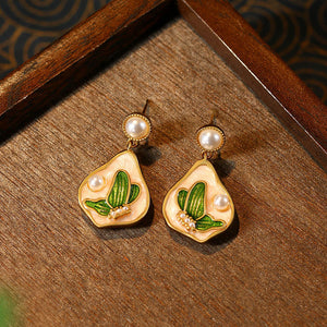Enamel Monet Garden Oil Painting Imitation Pearl Earrings