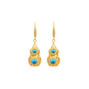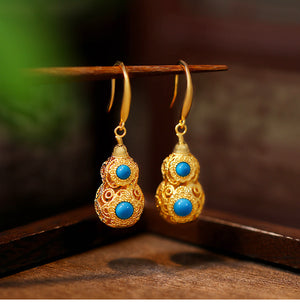 Gold Plated Gourd Fulu Imitation Pine Stone Vintage Earrings
