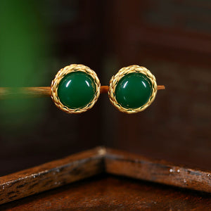 Vintage Emerald 925 Silver Button Pin Earrings with Diamond Style