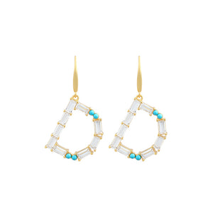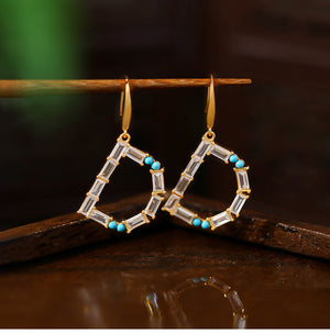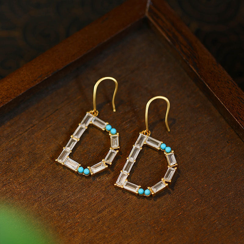 Copper Set Artificial Turquoise Zircon D English Letter Earrings T Square Women's Accessories