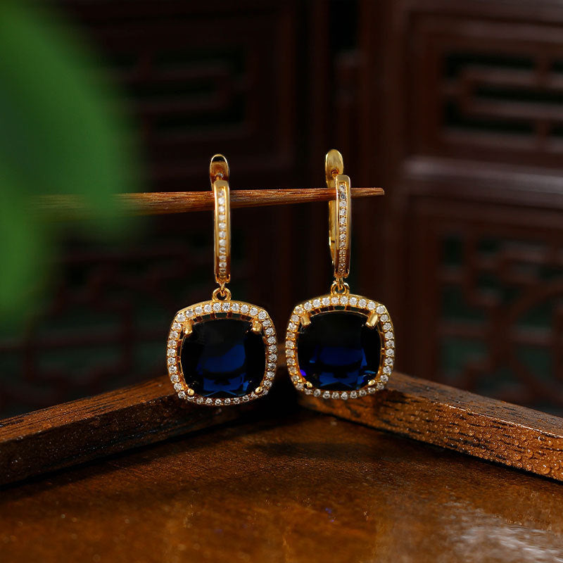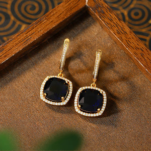 Fashion Bright Square Diamond Zircon Female Ear Hooks with Real Gold Plating