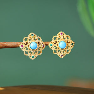 Gold Plated Hollow Filament Inlay Turquoise Earrings