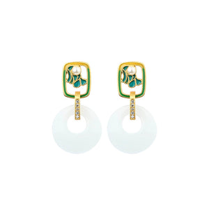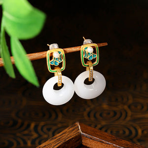 New Enamel Ping An Buckle 925 Silver Gold-plated Imitation Hetian Jade Earrings, Cheongsam Accessories