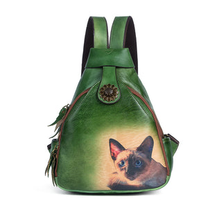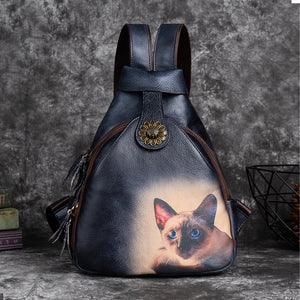 Vintage First Layer Cowhide Multi-Purpose Leather Backpack with Color Printing and Hand-Wiped Vegetable Tanning