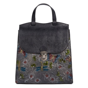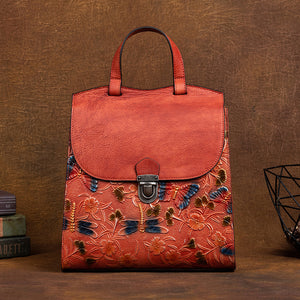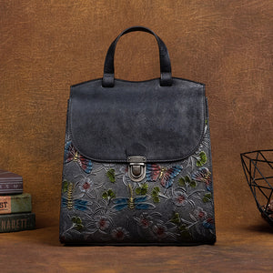 Genuine Vegetable Tanned Leather Embossed Women's Backpack