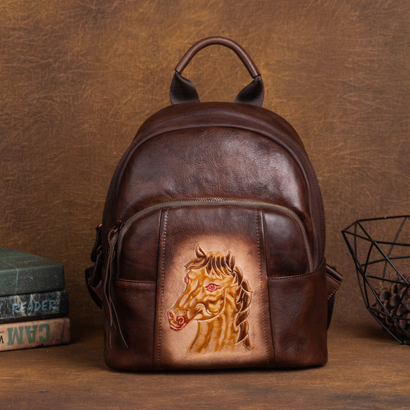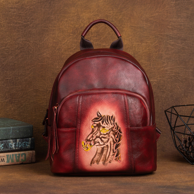 First layer cowhide vegetable tanned leather shoulder bag with Chinese style retro color