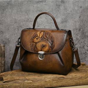 First layer cowhide multi-purpose retro embossed hand-brushed messenger bag