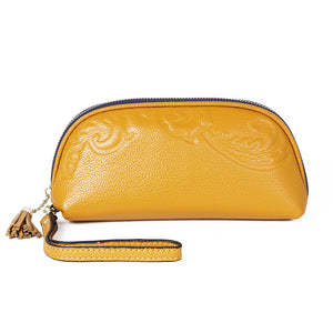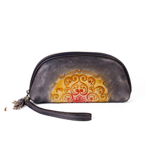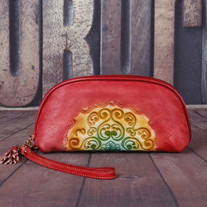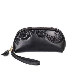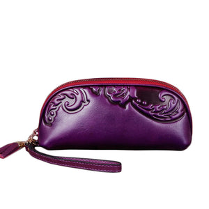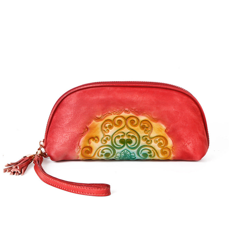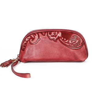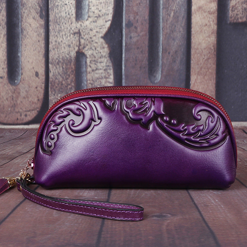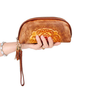 Retro leather women's handbag with embossed pattern and hand - polished finish