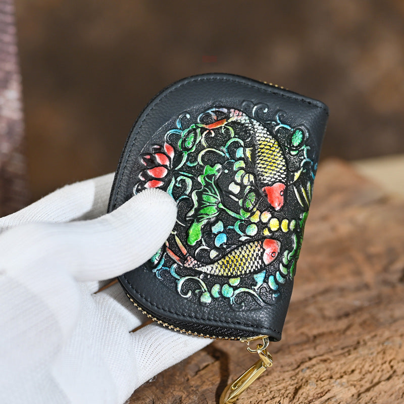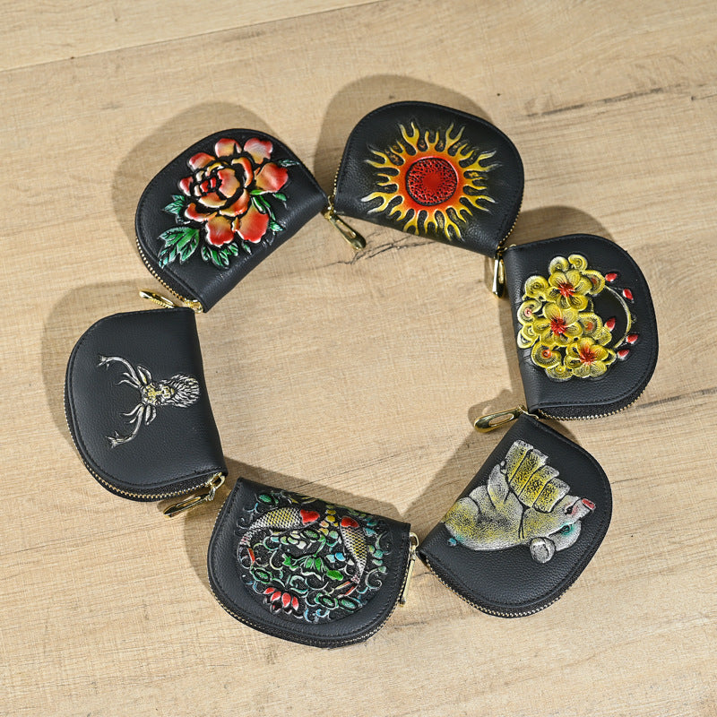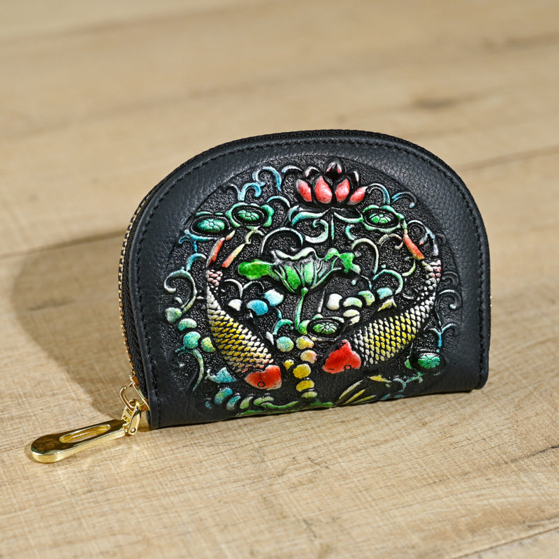 Vintage Clutch Wallet - Women's Genuine Leather First Layer Cowhide Embossed Coin Purse