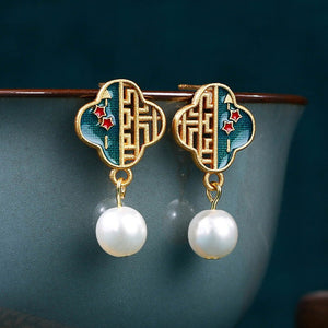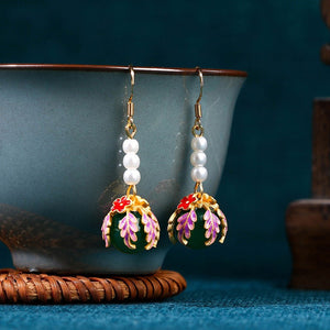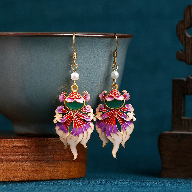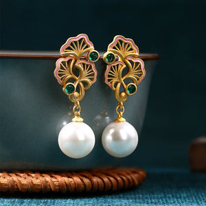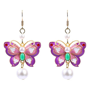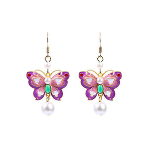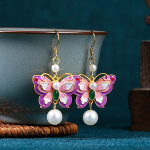 Enamel Gradient Butterfly 925 Silver Needle Pearl Earrings, Ancient Style Design