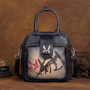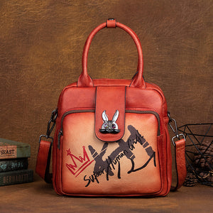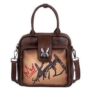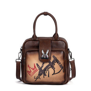 Top layer cowhide multi-purpose vegetable tanned leather women's bag, retro brushed style