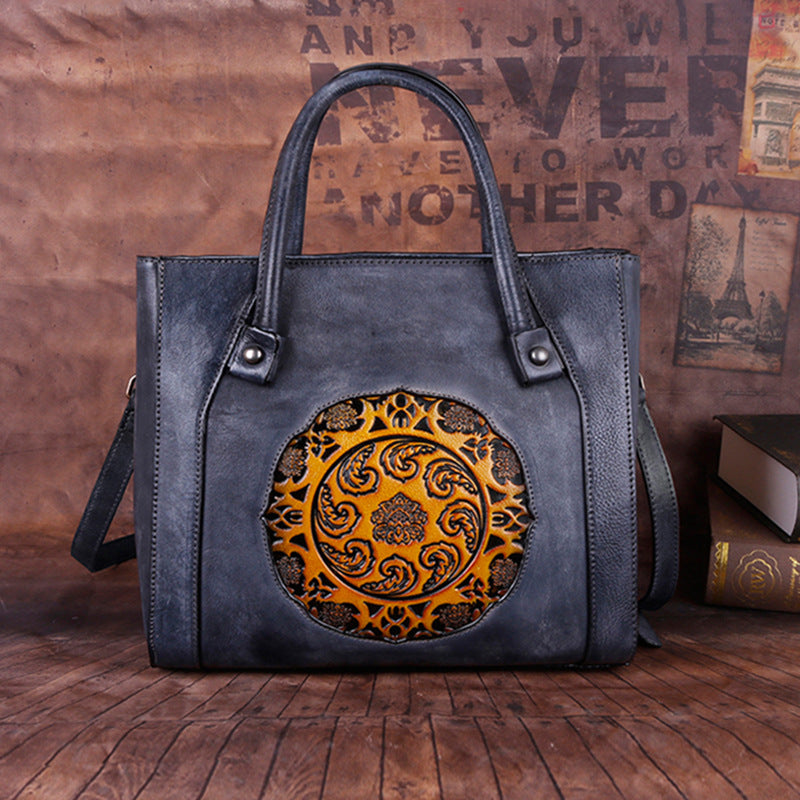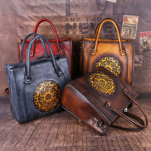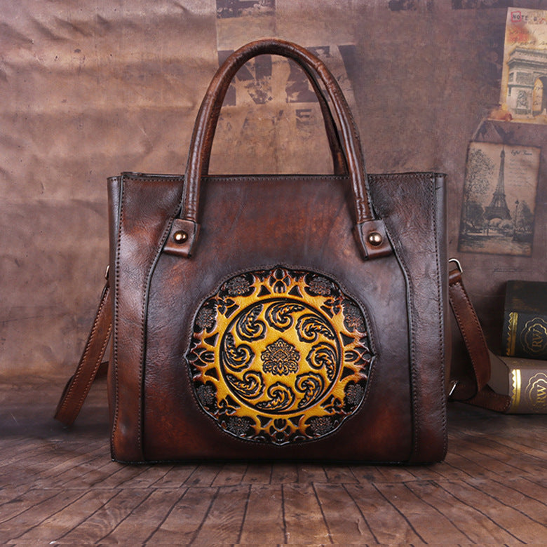 Top Layer Cowhide Women's Crossbody Bag, Vegetable Tanned Leather, Embossed & Hand-polished