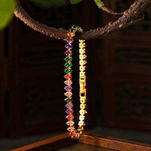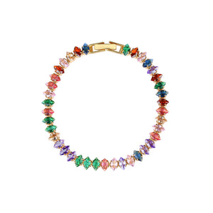 European American Tennis Bracelet Necklace, Real Gold Plated, Color Zircon Chain, Women's Summer Jewelry