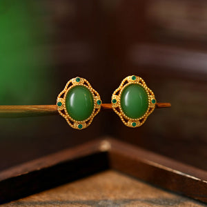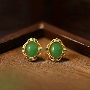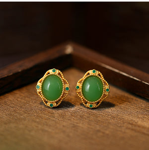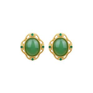 925 Silver Needle Imitation Jasper Earrings, Simple Round Retro for Women