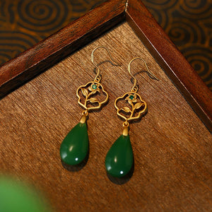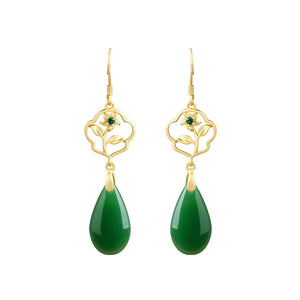 Flower Blossom Rich Water Drop Niche Unique Antique Ear Hook Earrings