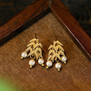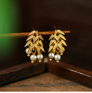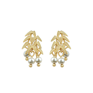 Golden Bamboo Imitation Pearl 925 Silver Pin Vintage Earrings for Women