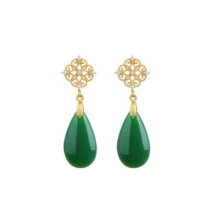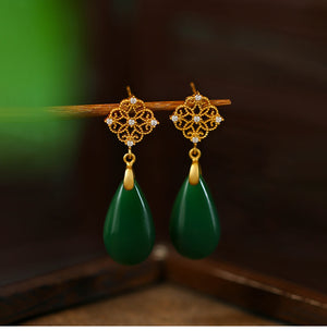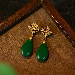 Antique Water Drop Imitation Jade Earrings, Ear Hook for Hanfu Cheongsam