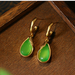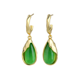 925 Silver Needle Earrings Inlaid with Imitation Jade, Simple Water Drop Design for Women