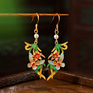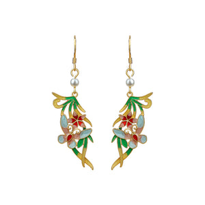 Original Design Color Oil Dropping Butterfly Pearl Silver Pin Earrings for Women