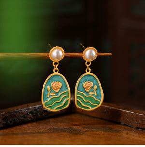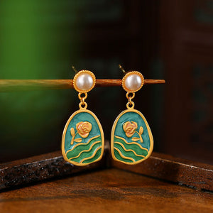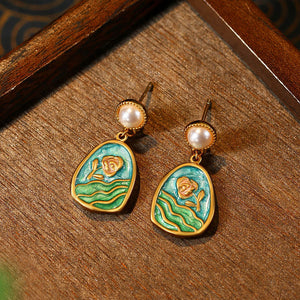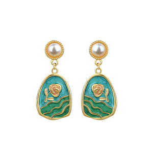 Vintage Enamel Oil Dropping Tulip Earrings, French Retro Art Style