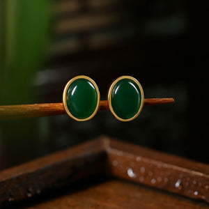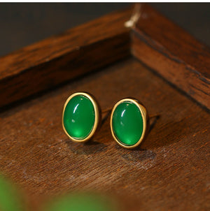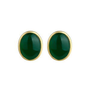 Ayr Rim 925 Silver Imitation Green Agate Needle Earrings, Japanese-Korean Style