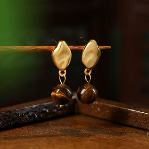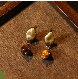 Maillard Style French Vintage Women's Asymmetric Natural Tiger's Eye Earrings