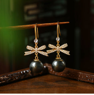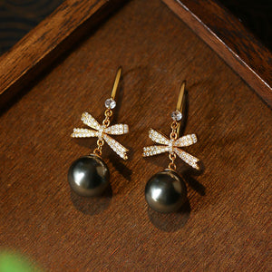 Korean Exquisite Temperament Zircon Bow Pearl Niche Design Fashion Earrings