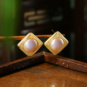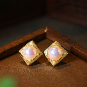French court style retro diamond pearl 925 silver plated 18k gold women earrings