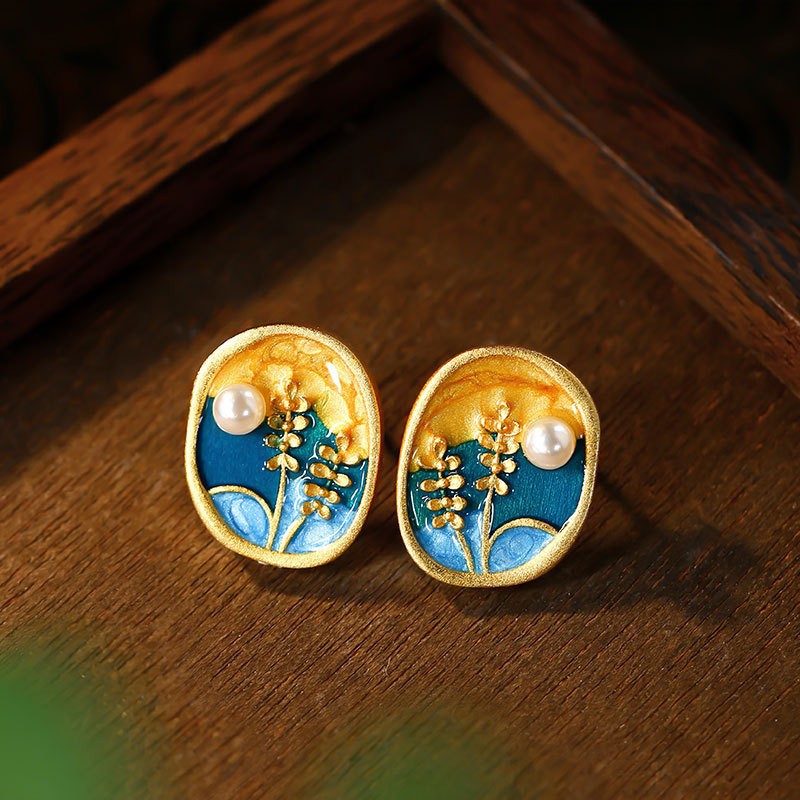 Monet Garden French Retro Pearl Earrings for Women, Niche, Sweet & Cute, Elegant