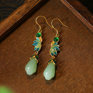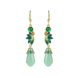 Mirror Enamel Glaze Imitation Jade Magnolia Earrings, Vintage Style