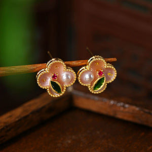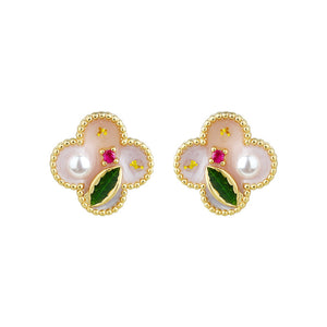 Real gold plating enamel drop glaze four-leaf clover earrings for women