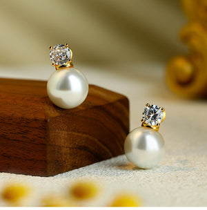 French Style Pearl Small Bulb Round Princess Earrings