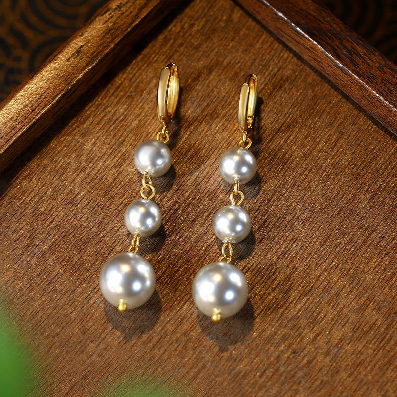 Shijia Pearl Light Luxury High Sense Beads Long Tassel Earrings