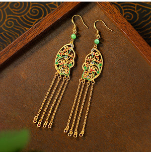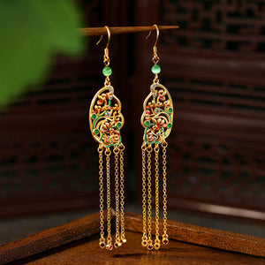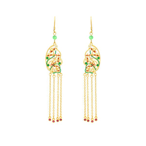 Original Design Enamel Colorful Flowers Brocade Trousers Tassel Earrings for Women