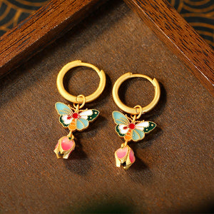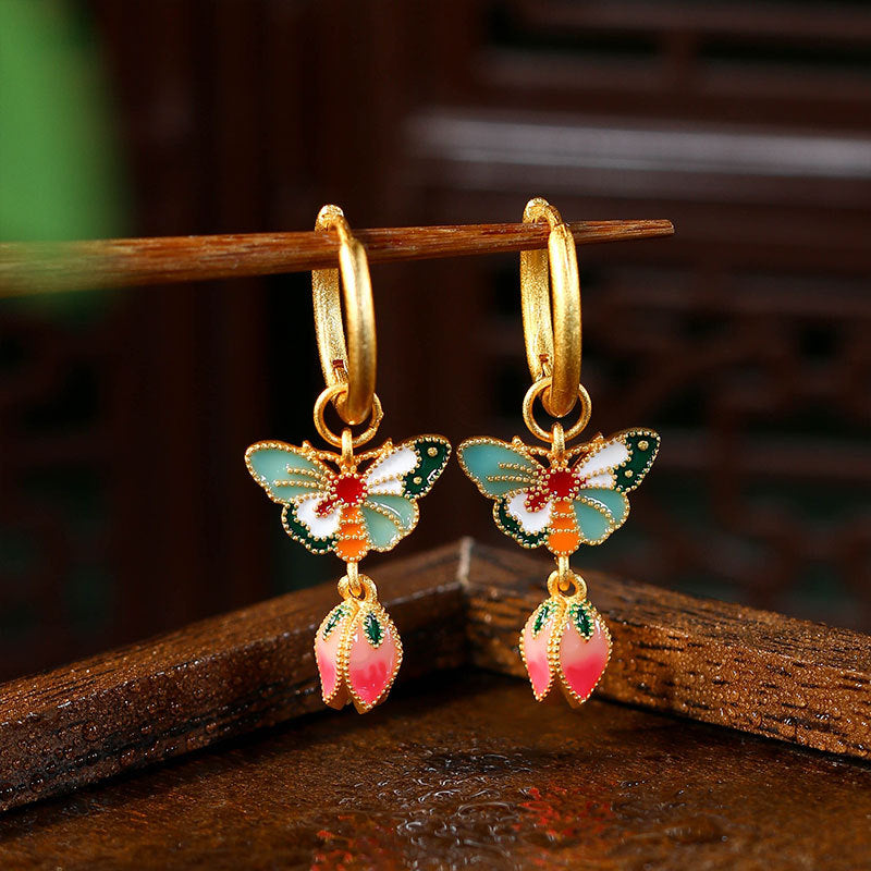 Enamel Butterfly Women's Ear Studs, Elegant Retro Style