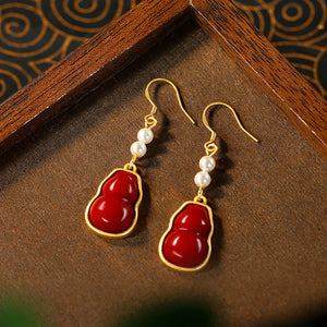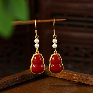 Gourd Folu Imitation South Red Cinnabar Earrings for Women