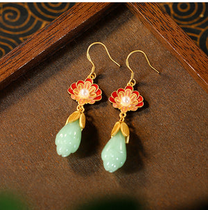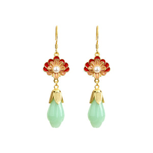 Aieryuan 925 Silver Lotus Earrings with Enamel Imitation Jade