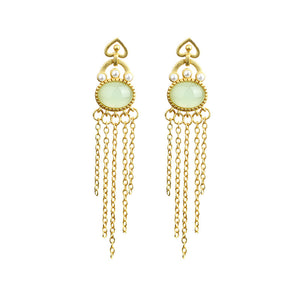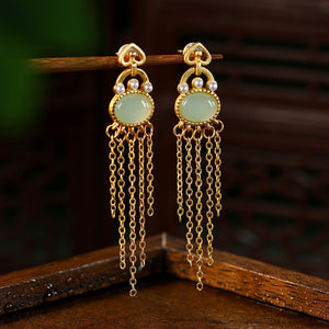 El edge gold-plated imitation Hetian jade long tassel earrings for women