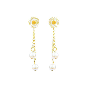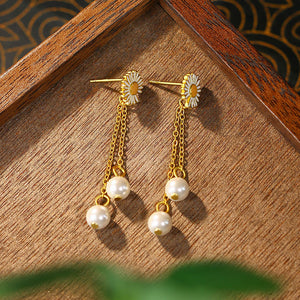 Daisy Pearl Tassel Earrings, European and American Ins Style, Imitation Freshwater Pearl, Antique Design