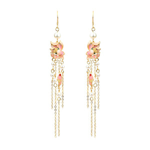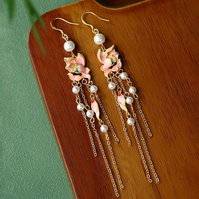 925 Silver Needle Hand-made Enamel Flowers Pearl Earrings for Women