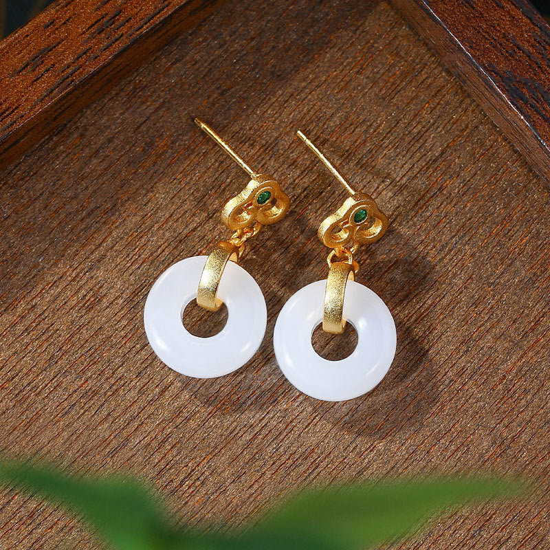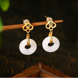Palace Style Retro Safe Buckle Imitation Jade Xiangyun Earrings for Women