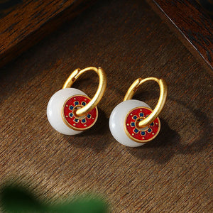 Gold-plated Painted Glaze Imitation Hetian Jade Earrings, Multi-ear Buckle, Niche Exquisite
