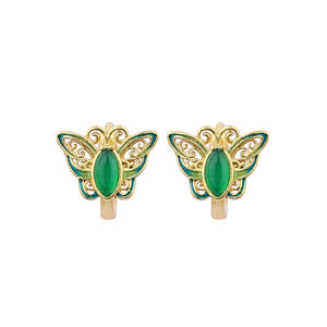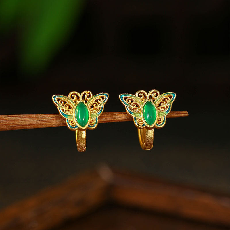 Ear Buckle Enamel Cloisonne Butterfly Earrings, Court Style Retro Ear Hook for Women