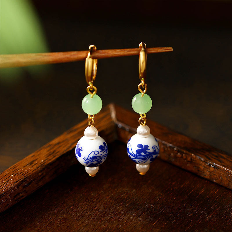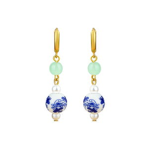 Blue and White Porcelain Earrings, Original Design, Handmade, Beaded