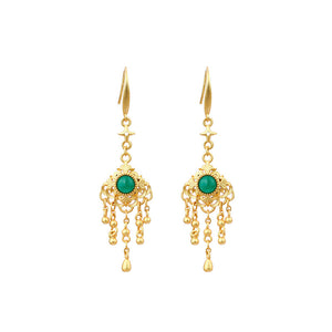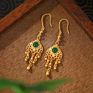 Gold Plated Jade Tassel Long Earrings with Classical Design