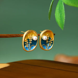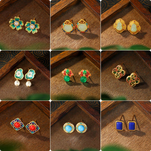 Enamel Cloisonne Niche Design Ins Light Luxury Silver Needle Earrings for Women