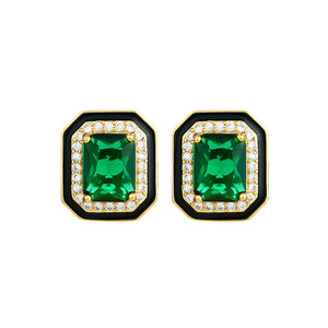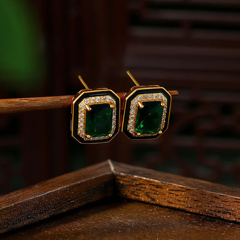 Paraiba Suit Simple Princess Square Green Diamond Light Luxury Black Enamel Earrings for Women