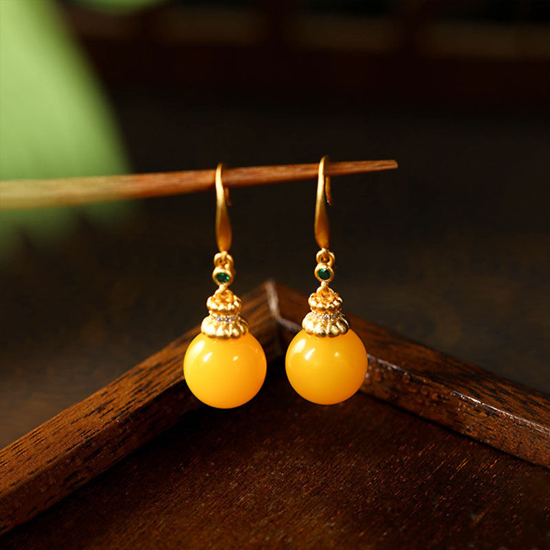 Real Gold Electroplating Faux Beeswax Amber Ear Hooks for Women