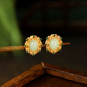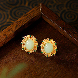 Female Joker Hollow Imitation Jade Earrings - High - end and Exquisite