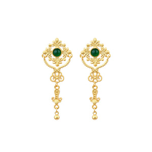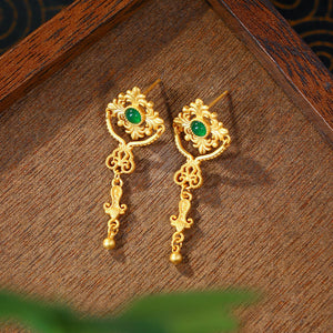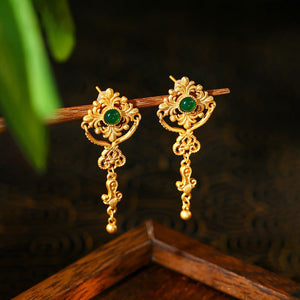 Ancient Method Gold-plated Imitation Jade Lace Tassel Earrings, Silver Needle